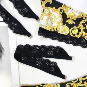 Triangle Micro Bikini Set Vintage Print Swimsuit Women’s Swimming Suit Hollow Out Swimwear Padded Push Up Bikini Set Swimwear Beachwear Swimsuit High Cut Bathing Suit Swim